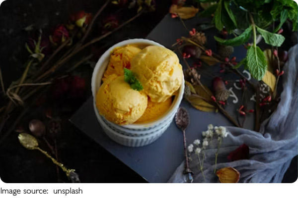 Once your ice cream is fully frozen and scoopable, take it out of the freezer and let it sit for a few minutes to soften slightly. Then, scoop and serve into bowls or cones! You can garnish it with some fresh mango slices or a drizzle of honey for an extra touch of sweetness.