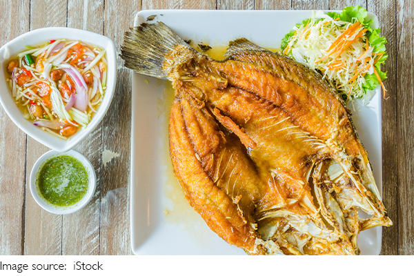 5. Heat peanut oil in a pan. When the oil is hot (about 80% heat), place in the fish. Pan-fry on medium heat until both sides are golden.
